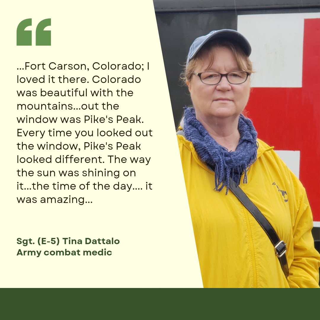 Tina Datallo recounts her decision to enter the Army with over a decade of service during the Cold War Era. Tina went from rural Michigan to Fort Carson, Colorado, Germany and Fort Knox. She describes a scary moment in boot camp at the shooting range and her experiences at the Nuremberg Stadium in Germany where Hitler gave his speeches. She also describes working in military health care during the AIDS epidemic. Tina went on to become a Registered Nurse and worked in many roles.
