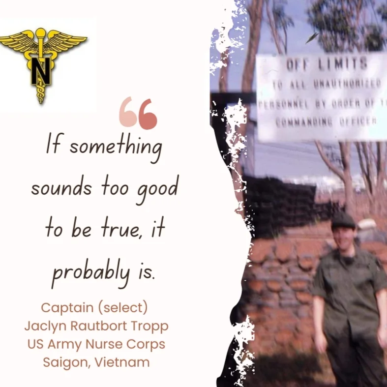 Jaclyn Rautbort Tropp recounts her experience as a hemodialysis nurse in Saigon, Vietnam in the 629th Medical Detachment at the 3rd Field Hospital. As a young Lieutenant, she is placed as the Officer in Charge of the Hemodialysis Unit. An area of medicine she had little to no experience beforehand. Joining the Army greatly helped her achieve her dreams of being a nurse and there is no doubt that the training she received aided her in her career after returning from the war. Jackie also recalls the advice she received from her mother, a former WW2 Army nurse, before joining the Army. This wisdom aided her through many potentially negative situations.